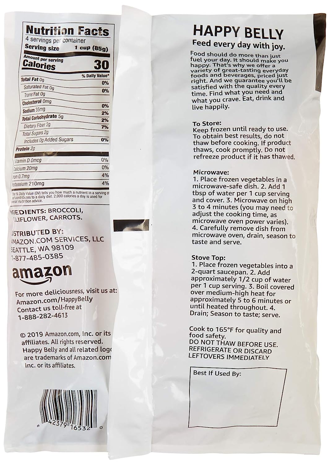 Happy Belly Frozen California Blend are a nutritious addition to your shopping list. Our frozen California blend vegetables are quick-frozen to preserve flavor. An excellent source of vitamins and good source of fiber, they're a healthy complement to any meal or a fresh, green salad.