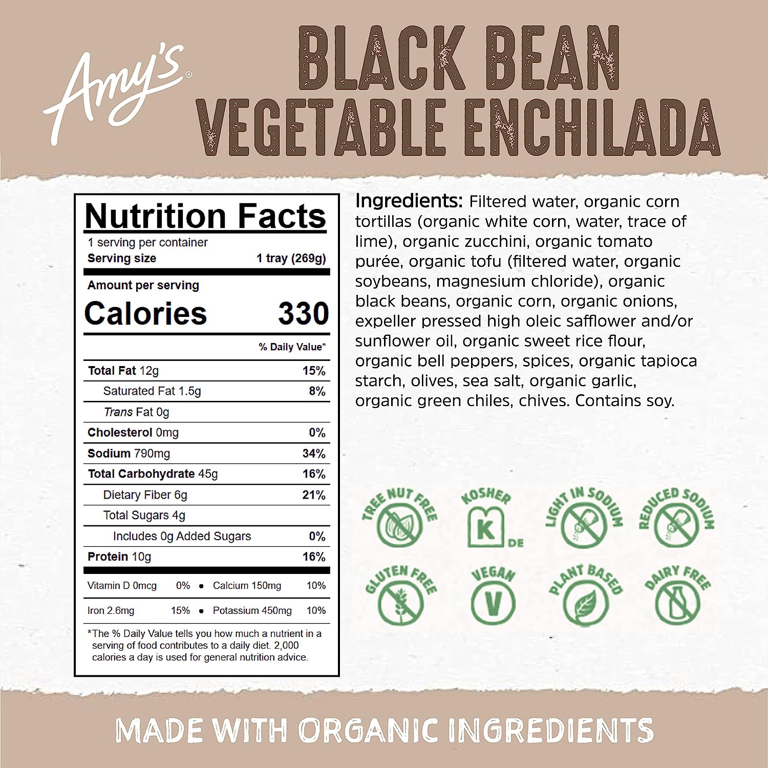 Amy's Frozen Meals, Black Bean Enchilada, Organic and Dairy Free, Gluten Free, 9.5 oz.