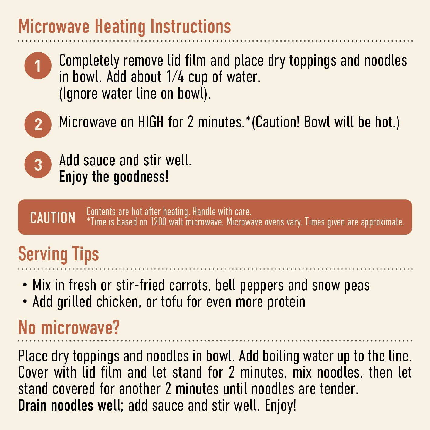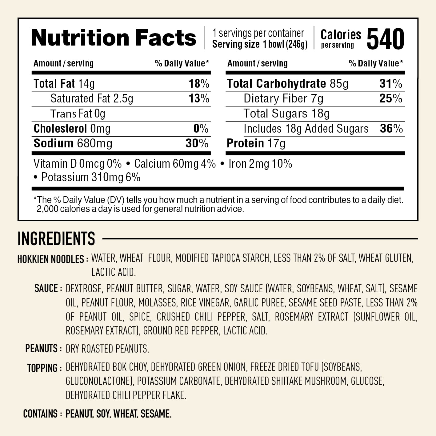 Get ready to enjoy some Thai peanut pleasure. Our incredibly rich and flavorful sauce, blended with tender Hokkien noodles, bok choy, cabbage, sesame seeds and layers of roasted peanuts make this Thai dish a peanut lover's obsession. Put away the takeout menus - you can go nuts in 2 minutes. Delicious, easy-to-enjoy, Asian-inspired cuisine that you can feel good about. That's our promise, and we don't take it lightly. It's what drives us each day to make our foods easier to enjoy and better for you, without sacrificing the vibrant aromas, flavors and textures that we all love.