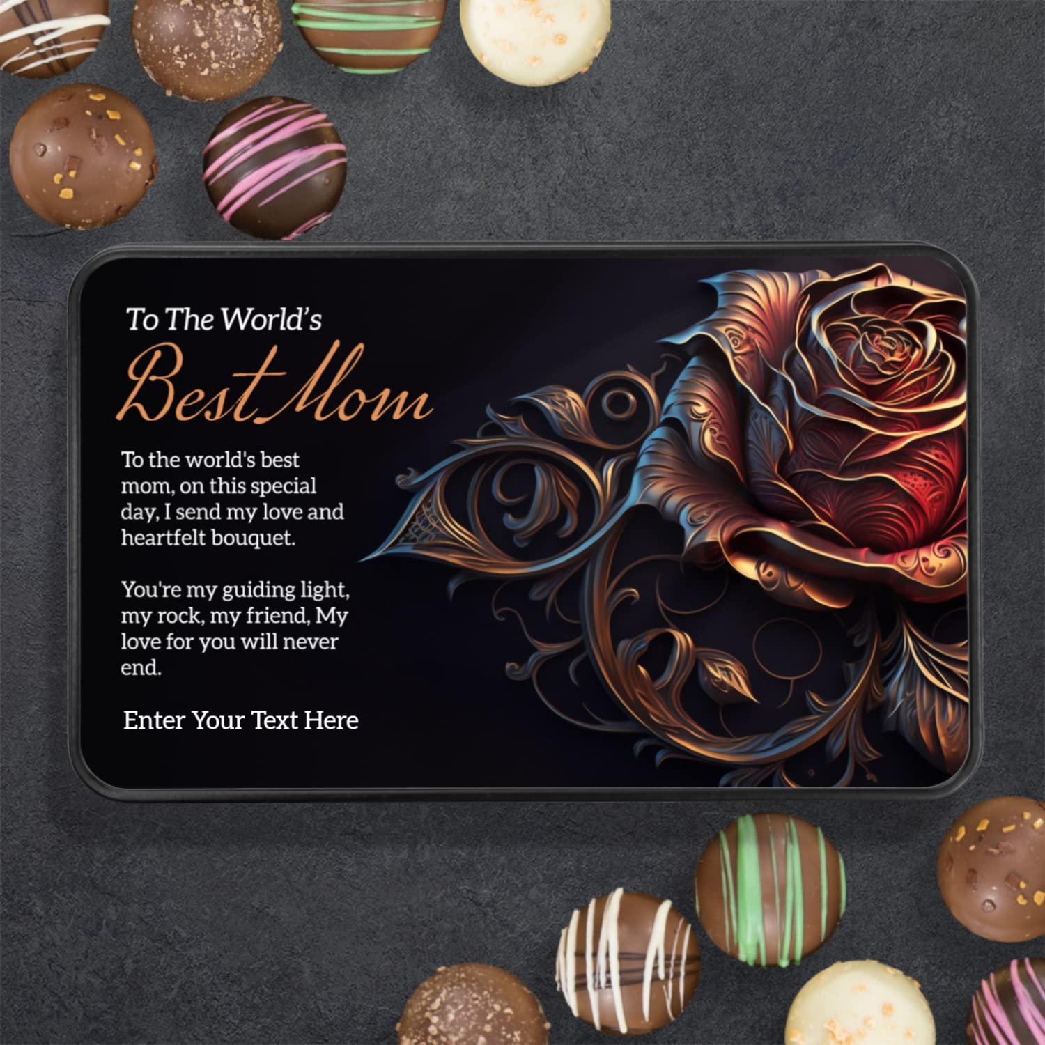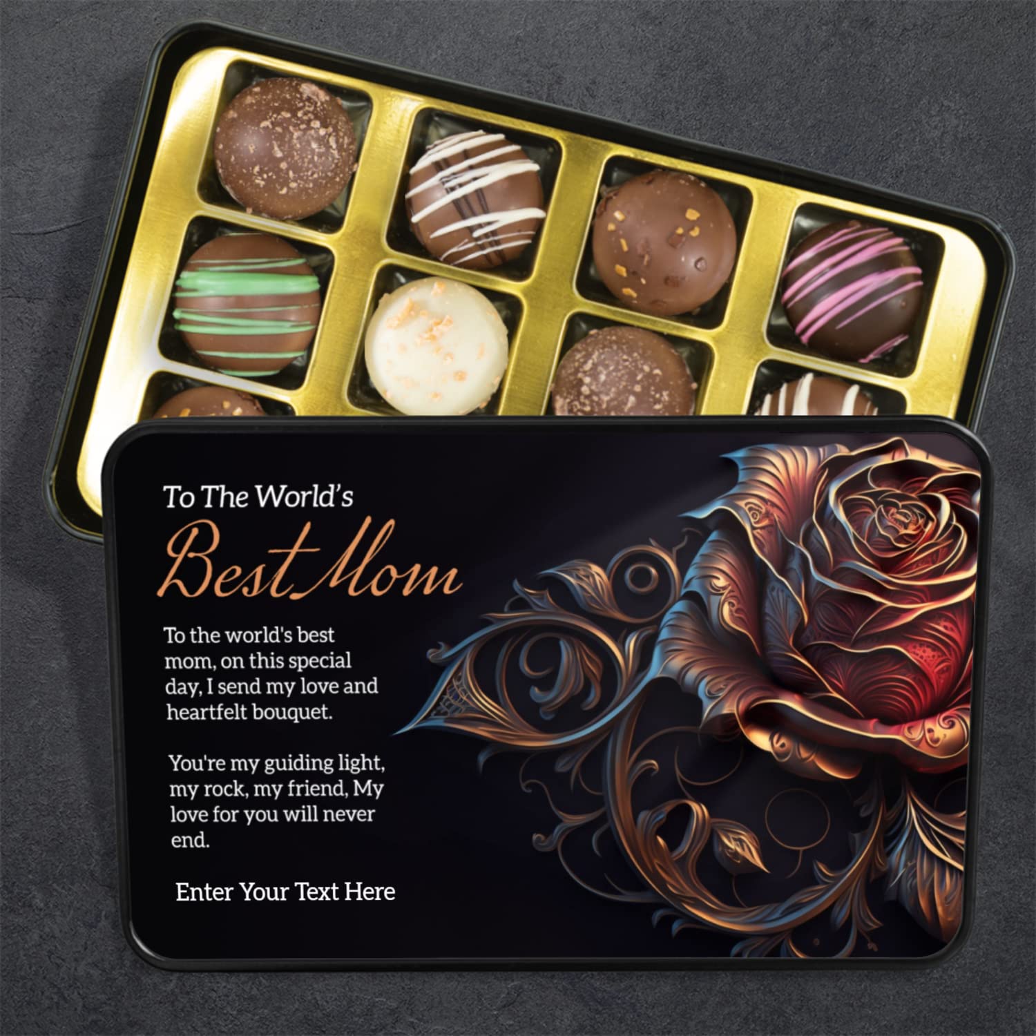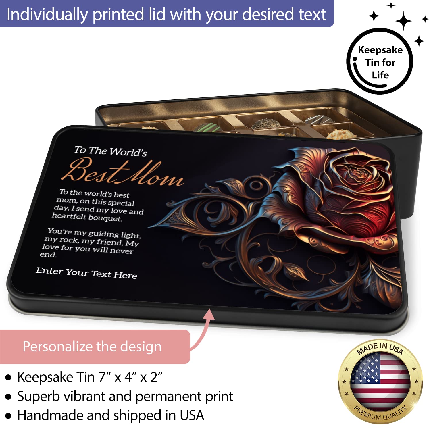 To The Worlds Best Mom Personalized Handmade Chocolates In Keepsake Tin - Gifts For Mom - Mom Gifts Gifts For Her Gifts For Women With Personalized Text