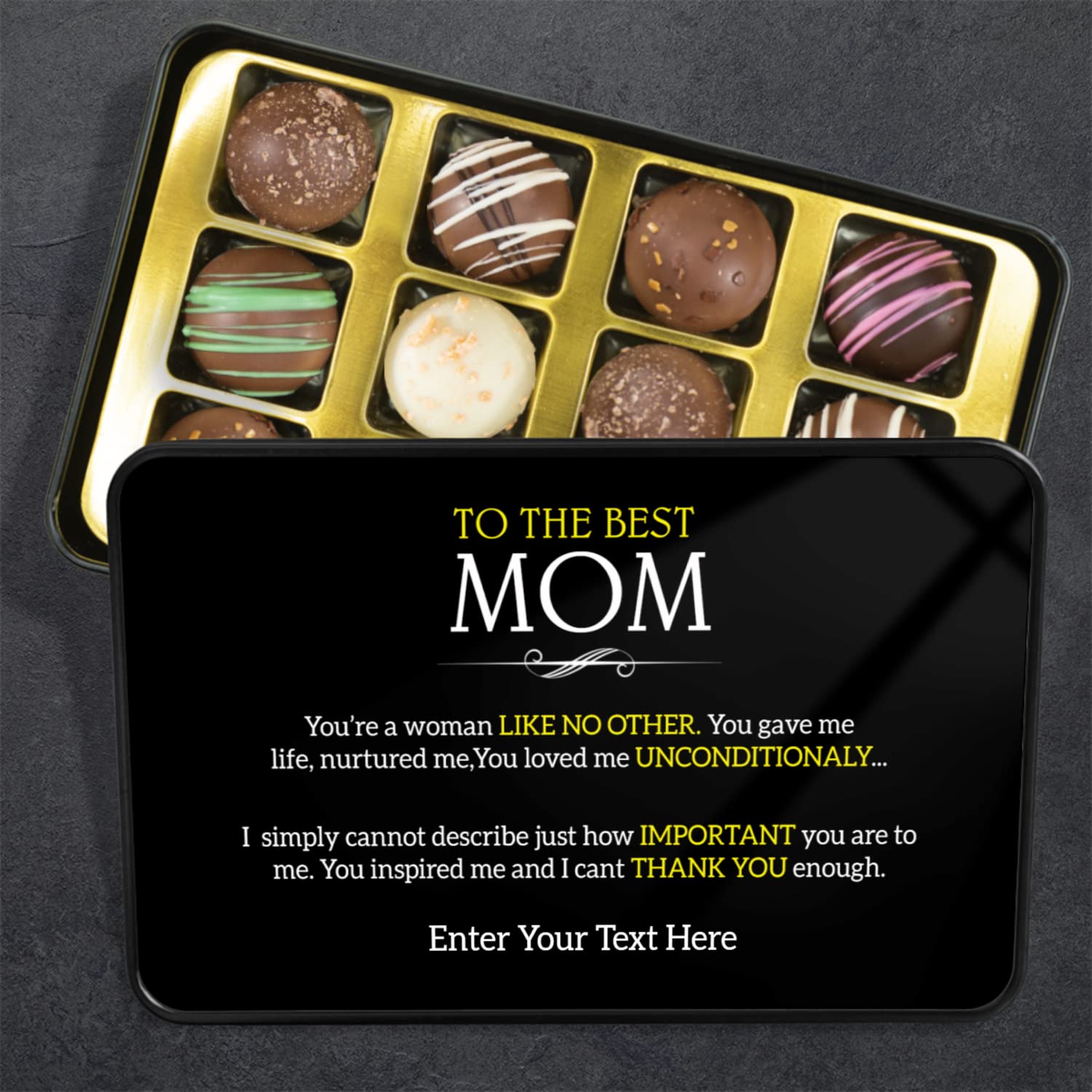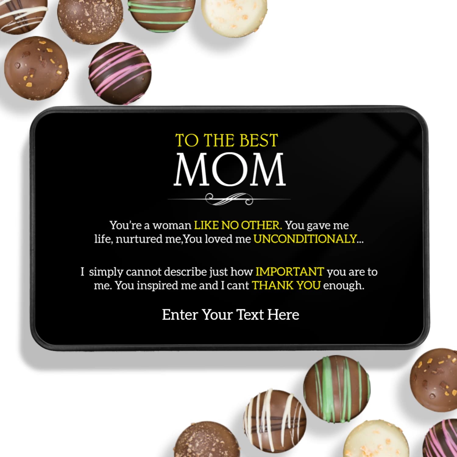 To The Best Mom Personalized Handmade Chocolates In Keepsake Tin - Gifts For Mom - Mom Gifts Gifts For Her Gifts For Women With Personalized Text