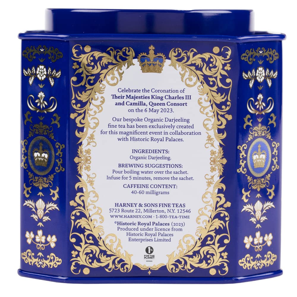 Celebrate the Coronation of Their Majesties King Charles III and Camilla, Queen Consort, on May 6, 2023. Our bespoke Organic Darjeeling fine tea has been exclusively created for this magnificent event in collaboration with Historic Royal Palaces. PART OF OUR HISTORIC ROYAL PALACES COLLECTION Historic Royal Palaces is an independent charity that looks after six of the most wonderful palaces in the world: Tower of London, Hampton Court Palace, the Banqueting House, Kensington Palace, Kew Palace and Hillsborough Castle and Gardens. The Historic Royal Palaces organization helps everyone explore the story of how monarchs and people have shaped society, in some of the greatest palaces ever built. HARNEY & SONS IS A PROUD MEMBER OF 1% FOR THE PLANET. Joining 1% for The Planet in 2006 meant we could directly donate one percent of our total sales to the environmental organizations of our choice. Harney & Sons was founded on a commitment to deliver customers the finest quality tea possible. This promise, made 40 years ago, serves as the company's guiding principle. Today, Harney & Sons Tea remains family owned and managed, with three generations of Harney's preserving John's tradition of fine tea and traveling the world in search of the finest ingredients. It is not only the Harney mission to deliver quality tea products to their customers, but also to educate the world of tea history and taste. Whether through their dedicated customer service team, their published guides to tea drinking, or their two tea tasting shops, the Harney & Sons team works to pass on their passion of tea to a wide audience. From lugging heavy tea filled chests down their basement stairs, to stocking shelves at stores nationwide, Harney & Sons remains committed to delivering their customers a superior tea drinking experience.