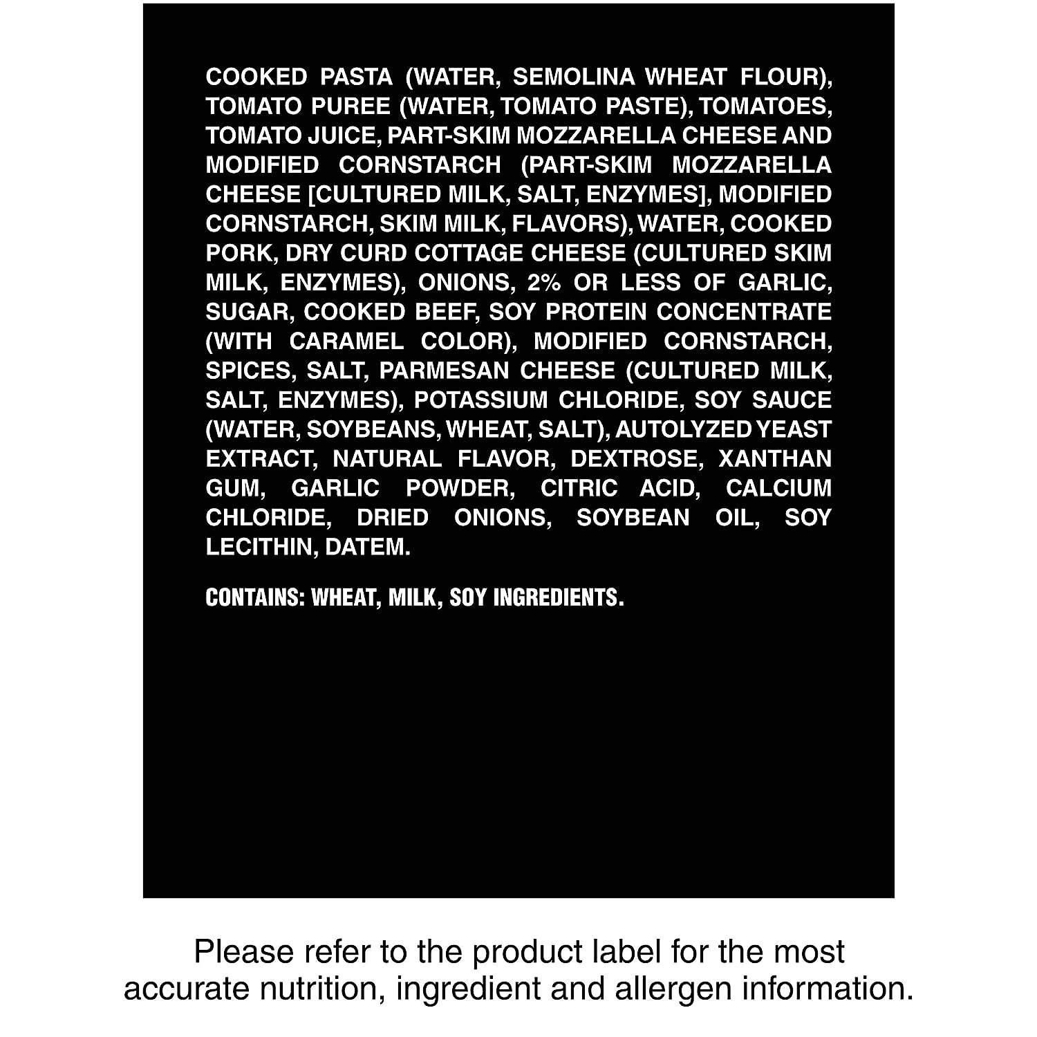 Satisfy your comfort food cravings with a Lean Cuisine Comfort Cravings Lasagna With Meat Sauce Frozen Meal. At 310 calories and 17 grams of protein per package, this easy-to-make Lean Cuisine meal features freshly made lasagna with a delicious meat sauce. Each 10.5-ounce frozen dinner can be enjoyed on its own or served with a side salad as part of an easy meal. Pair your Lean Cuisine frozen lasagna with a sandwich, or customize it with your favorite add-ons. Quick and easy to prepare, this microwave meal makes a convenient lunch, dinner or snack. Lean Cuisine entrees are made with premium ingredients for a tasty, feel-good meal that rivals carry-out. This Lean Cuisine lasagna offers 15% daily value of calcium per serving for a satisfying frozen dinner you can feel good about. Lean Cuisine frozen meals are not your mother’s diet food. Lean Cuisine helps you take control of your wellness goals with a variety of delicious frozen dinners and snacks, all 400 calories or less. For more crave-worthy meal options from Lean Cuisine, try Lean Cuisine Comfort Cravings Five Cheese Rigatoni or Lean Cuisine Comfort Cravings Macaroni and Cheese.