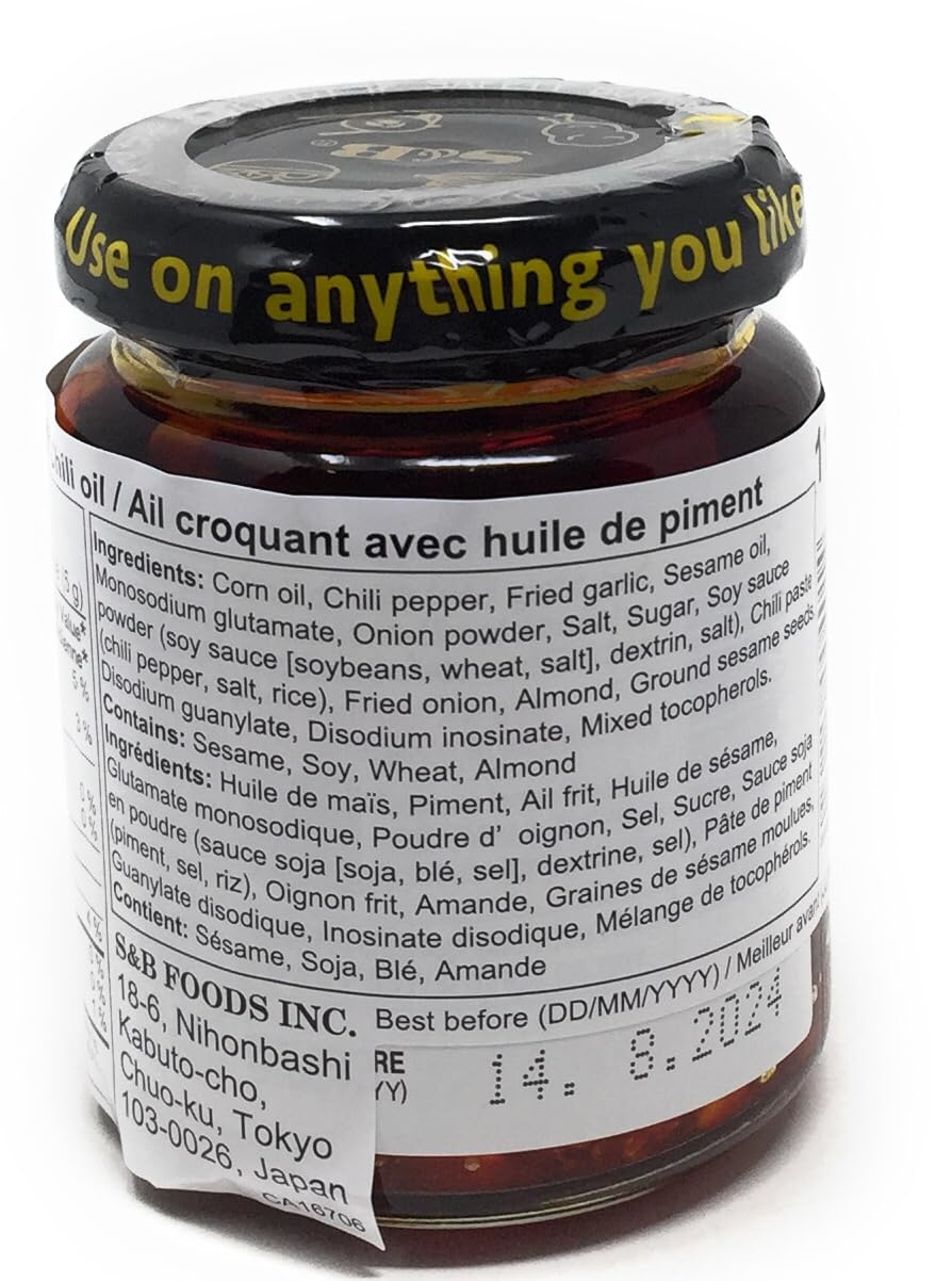 S&B chili oil w/ Crunchy Garlic 3.9 oz (Pack of 2)